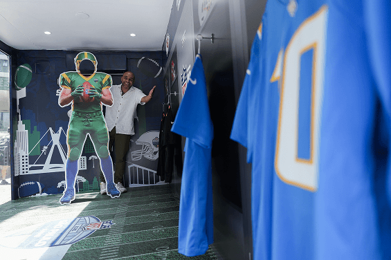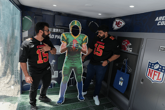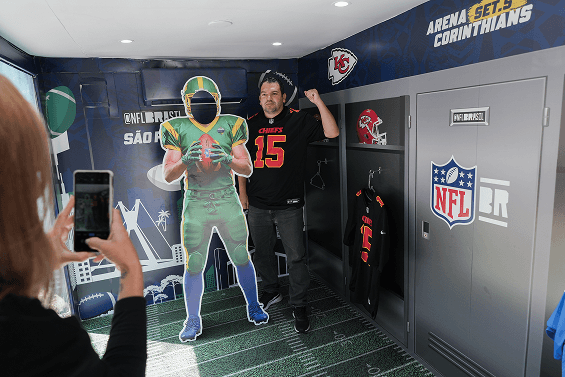O público foi convidado a subir e entrar em um portal exclusivo para o mundo da NFL podendo viver uma experiência única e se transformar em jogadores por um dia. Dentro do truck, foi montado um photo opp com capacetes e camisetas autênticas do time. As pessoas puderam ainda testar sua altura em uma régua de comparação gigante, que mostrava a diferença de tamanho entre elas e os jogadores da liga, reforçando a grandiosidade desses atletas.